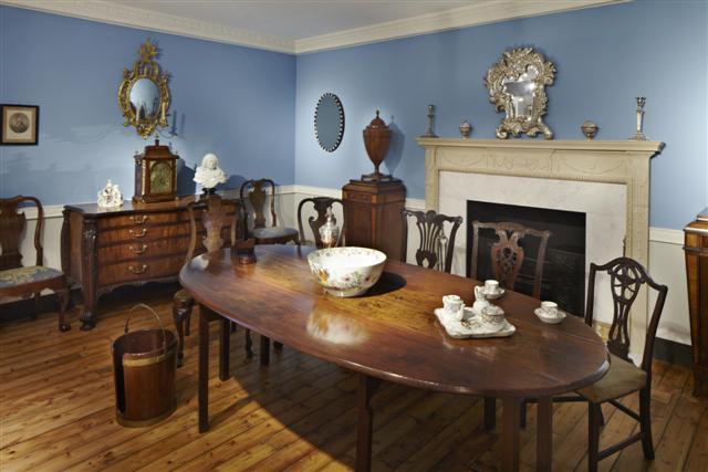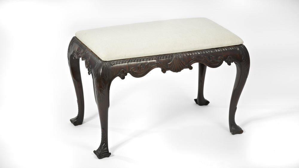 A distinctive Irish style developed, characterized by cabriole legs and ball and claw feet. Seats narrowed towards the back resulting in a round form. Popular carved motifs included an eagle’s head, birds, rosettes, and scalloped shells. Due to increased trade links with the Far East there was a rise in the popularity of Chinese decorative work, Japanese lacquer and Japanned furniture.