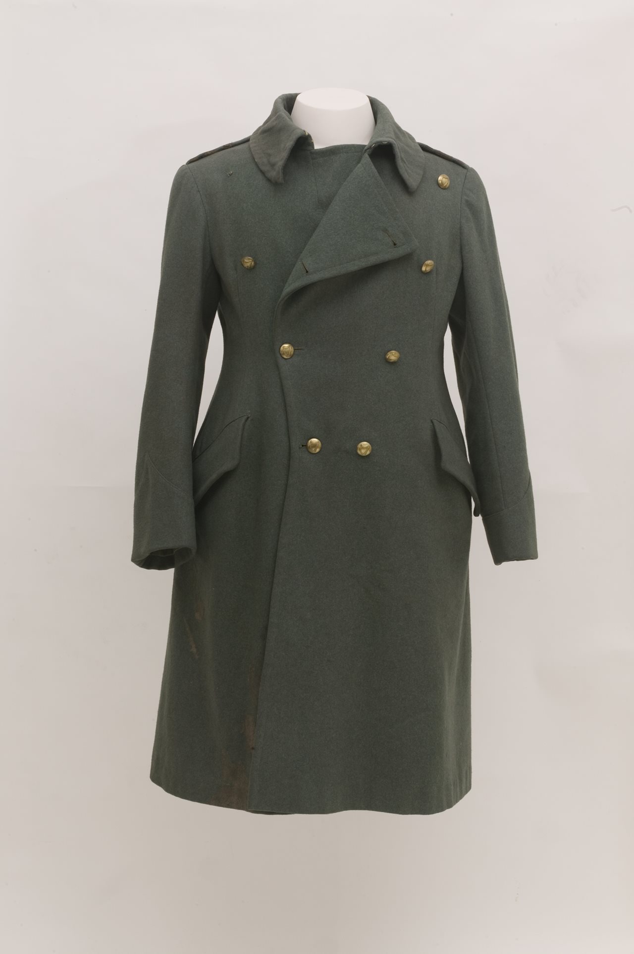 NMIHE:EW.42a: Greatcoat worn by Michael Collins when he was killed, still with dried mud from Beal na mBlath.