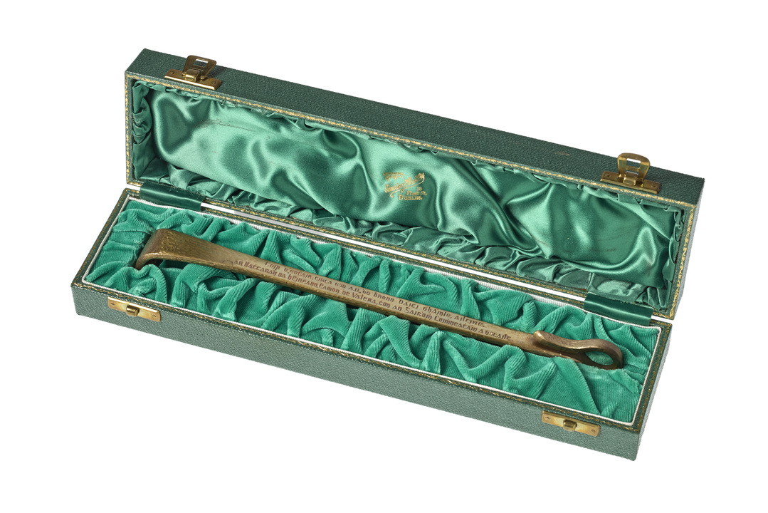 The 50th commemoration of the 1916 Rising celebrated the modern Republic and its revolutionary past. Dedicated to all who died in the cause of Irish independence, the Garden of Remembrance was opened by President de Valera with this ceremonial key.Location: