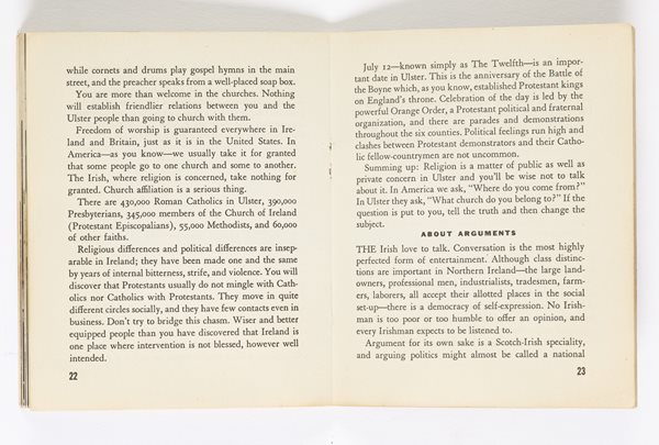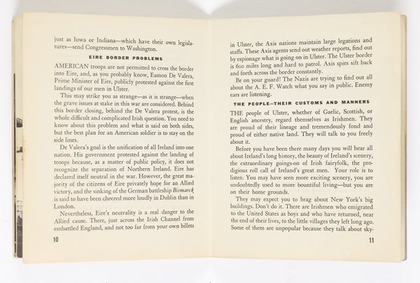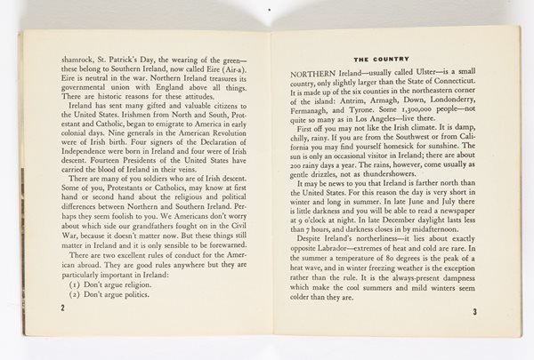 US Army soldiers stationed in Northern Ireland received this booklet explaining Irish history, traditions and social habits to help them integrate into local life.