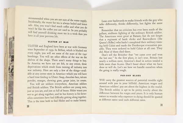 Pocket Guide to Northern Ireland, published by the United States Army for American soldiers stationed in Northern Ireland during World War II c.1942.