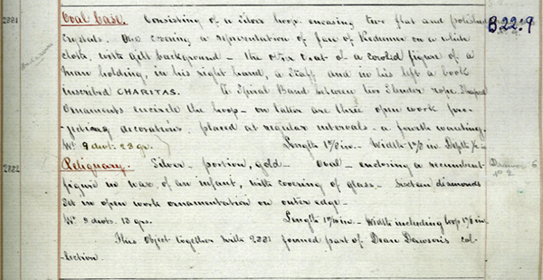 This object is currently stored in the Irish Antiquities Reserve collection. You can see examples of medieval reliquaries in our Medieval Ireland 1150- 1550 exhibition, or visit our Decorative Arts and History museum to see examples of jewellery and dress from the Georgian era onwards in our exhibition, The Way We Wore. If you would like to see some reliquary pendants that were found in South America, the Brooklyn Museum has a small but interesting collection.