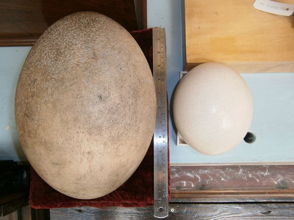 The eggs produced by elephant birds are the largest of any known species, with a capacity of up to 2 gallons, even exceeding dinosaur eggs in size! An elephant bird egg is large enough to hold the content of up to 7 ostrich eggs, 180 chicken eggs or 12,000 hummingbird eggs. Due to their exceptional size, these eggs have long been a novelty item, from Arabian merchants in the 13th century to modern day collectors. The eggs were also prised by the Madagascan natives who used them as domestic tools; for example to hold liquor purchased on trips to Mauritius, or in religious ceremonies.