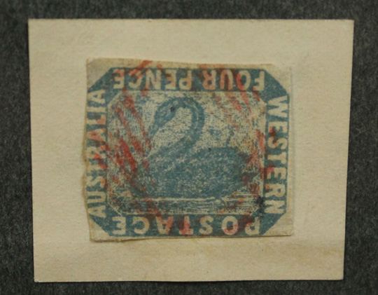 Very rare, 4 pence, first-issue Western Australian stamp known as the ‘inverted swan’, from the Duke of Leinster Collection.