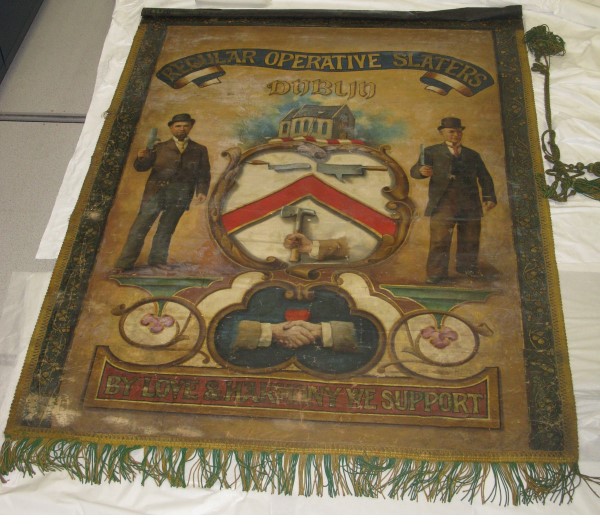 The banners were donated to the National Museum of Ireland by T. McDermott, Secretary of the Slater’s Union.