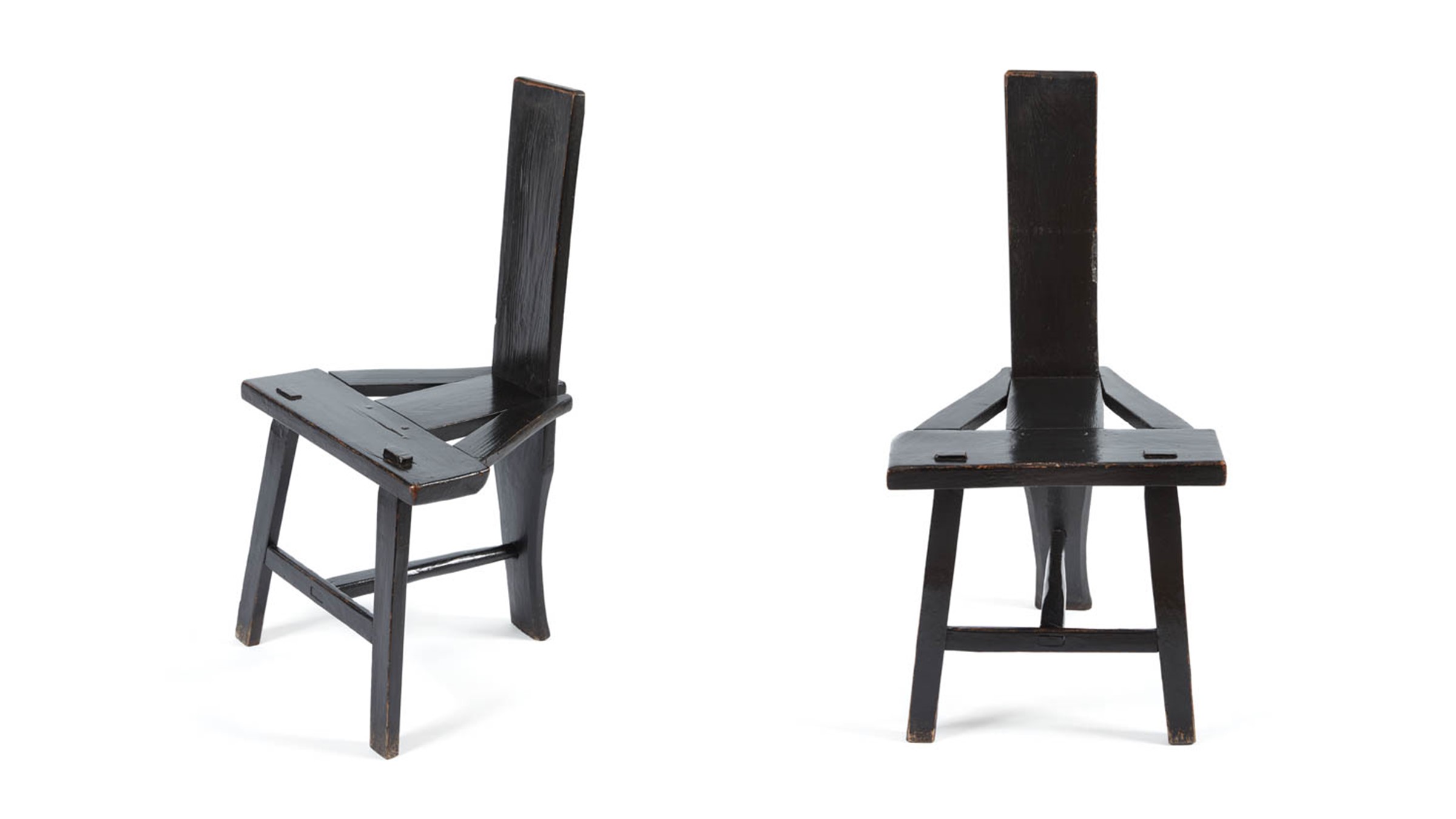 These two black painted chairs were donated to the National Museum of Ireland by Jane Price in 2019. She remembers the chairs being in her grandparents’ house from the time that she was a small child. She does not have any information on where the chairs might have come from originally. She believes the chairs were stained a black colour to match a black table.