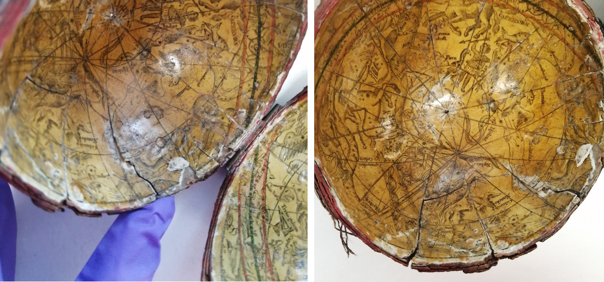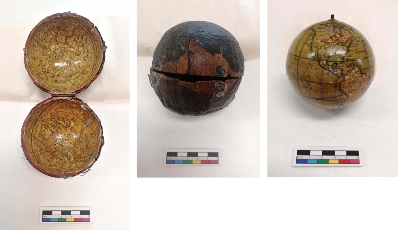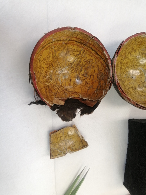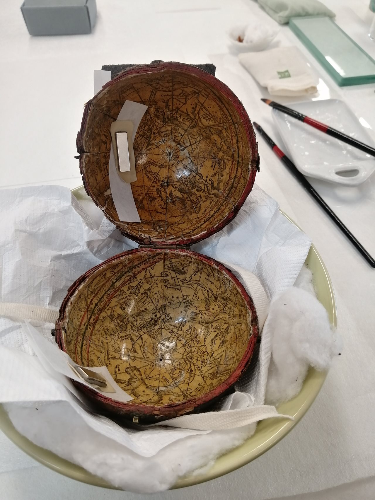 Following treatment, the globe was stable enough for handling and display alongside ‘Celestial Spheres’, the work it had inspired. This globe was challenging and enjoyable for me to conserve as it gave me the chance to work with a type of object which I had not encountered before and to learn about the historic processes involved with its manufacture.