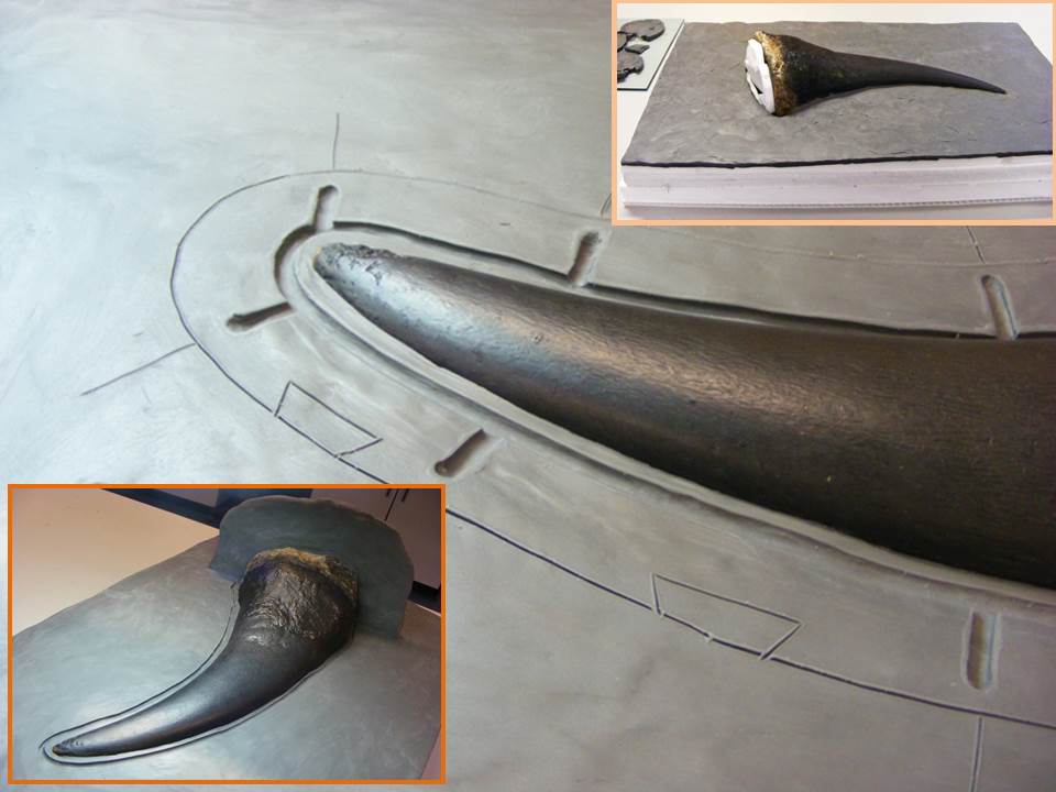 Step 2: The horn is set onto a smooth bed of specialist modelling clay.