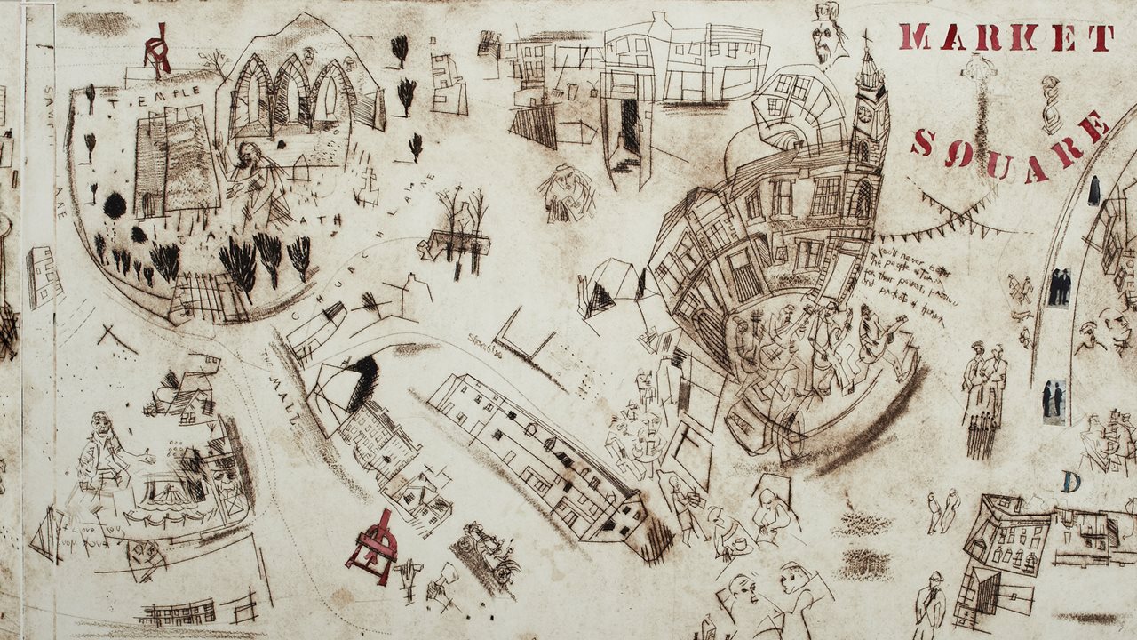 The map was created by cutting or etching images into a copper plate (known as intaglio). This intaglio print depicts important buildings and places in Tuam and highlights local folklore evoking Tuam as an ancient centre of Connacht.