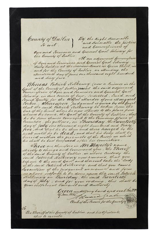 On 20 July 1865, Kilkenny became the first man to be hanged in Dublin since 1842. The 1842 execution reportedly drew a crowd of 20,000 people and Kilkenny’s execution, which took place on the drop-platform balcony over the main entrance to the gaol, also attracted a large crowd of spectators.