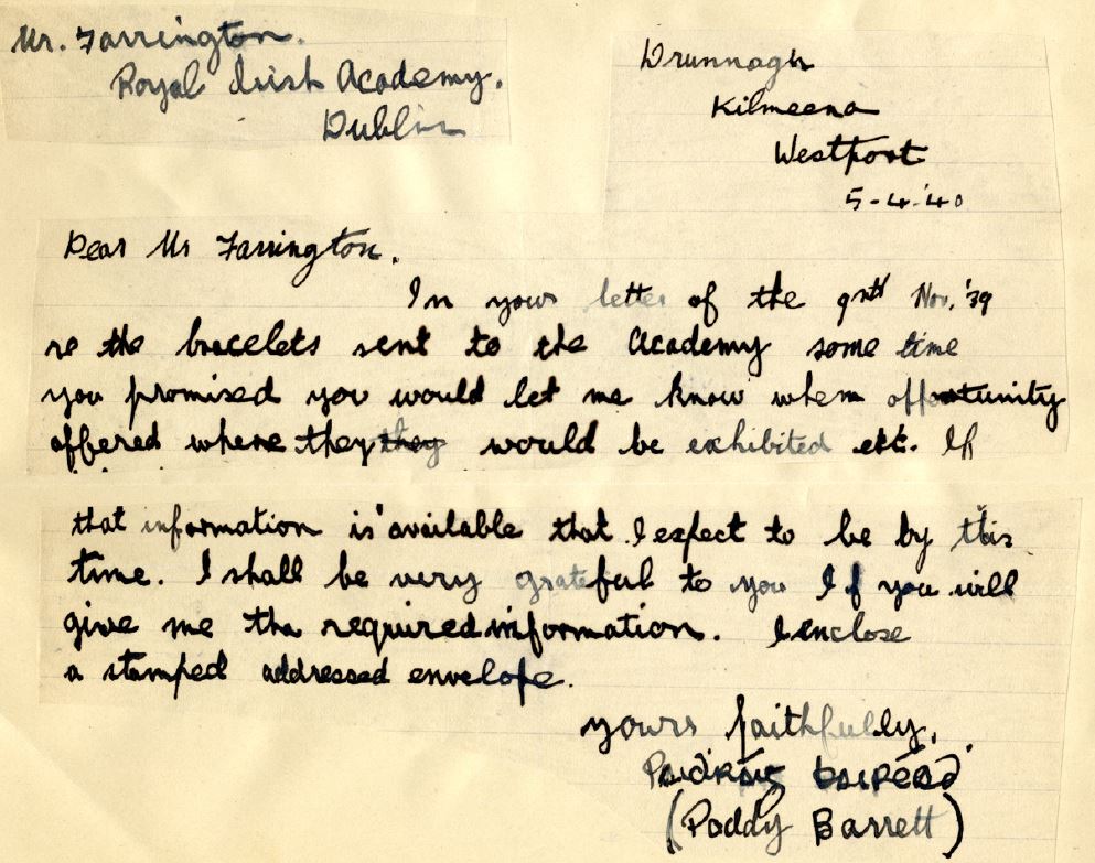 In 1939 Patrick Barrett discovered eleven silver arm-rings and fragments of fourteen others, buried together on his land at Cushalogurt, on the shore of Clew Bay.