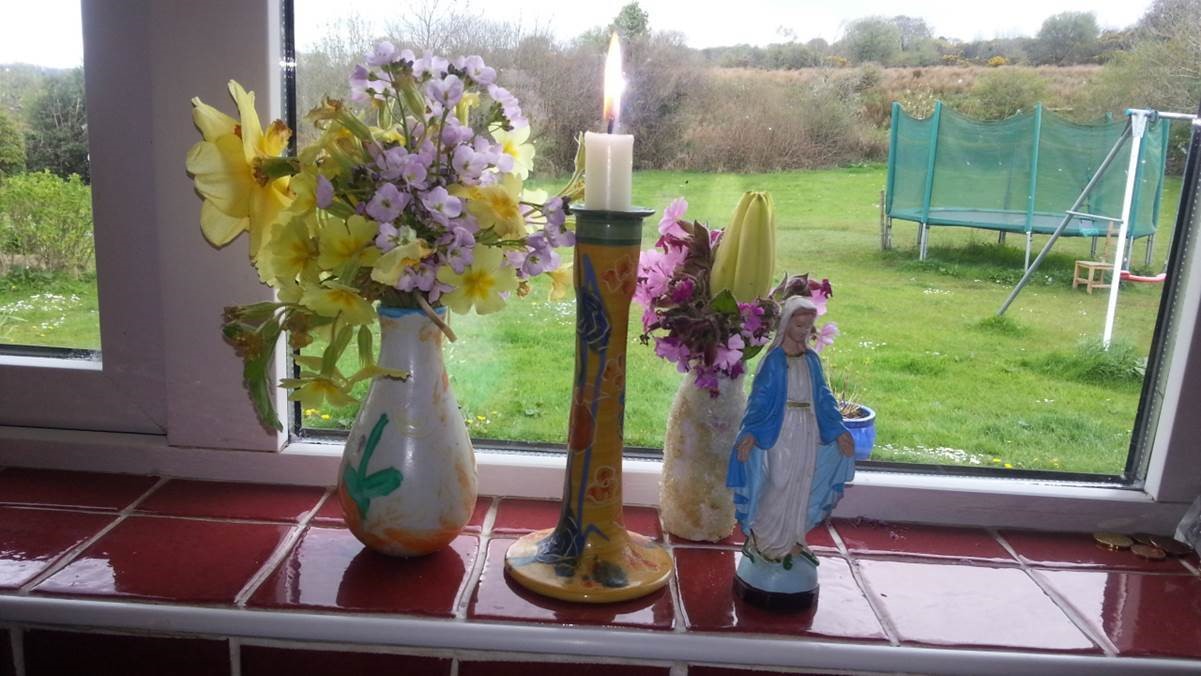 Children and adults collected flowers for crowning Our Lady in town processions. They also used them to decorate grottoes, shrines and church altars. It was and still is very common to have a home altar either in the kitchen or outside in the farmyard. Sometimes the flowers picked for this altar were made into crosses. The maintenance of these altars and their replenishment with fresh flowers continued on from the 1 May, throughout the month.