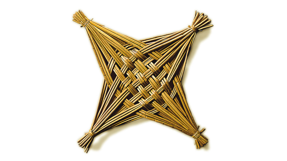 Spring began with the feast day of St. Brigid, whose cult had strong associations with that of a pagan goddess of fertility. It was a season of growth on the land and of new life on the farm when people looked forward to better weather and longer days. In order to protect the family, the animals and prospective crops, crosses were made to honour St Brigid and seek her blessing. These were made in a variety of styles using straw, rushes, or other natural materials and were hung in the home and in outhouses. A festive meal of potatoes and butter was also eaten on the eve of St Brigid’s Day.