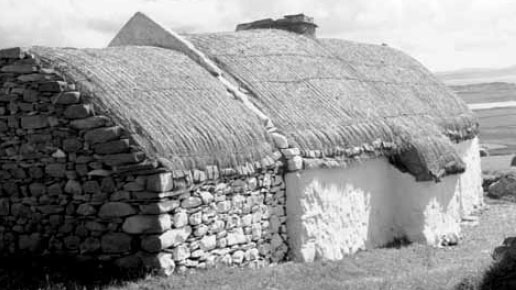 Thatched roofs, once common throughout Ireland were, like baskets, made of natural materials. Different techniques were used to attach straw or flax, marram or rushes, into a series of bound layers to form the thatch. Thatchers only needed a few tools of simple design, usually made by the thatcher himself, or by the local blacksmith.