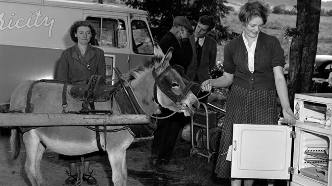 The rollout of electricity  accelerated a process of modernisation that saw electrical appliances installed in kitchens across the State. Advertisements and demonstrations promised a new, modern lifestyle to Irish women, without challenging existing gender roles.