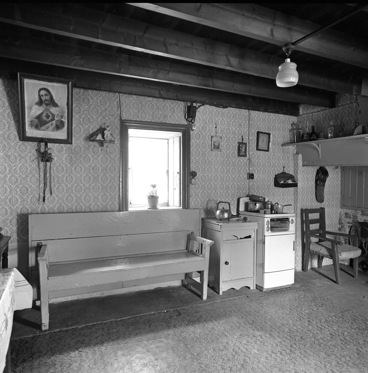 Many people initially installed a light in each room and one socket near the kitchen door, which was used for the iron, radio or kettle, as needed. Many households had a shock when their kitchens were lit up with electric light. Suddenly, cobwebs invisible in gas- or candle-light could be seen, which prompted a wave of repainting and redecorating across the country. Electric light was welcomed for its ability to illuminate homework and crafts, as well as upgrading Sacred Heart lamps to perpetual electric light.