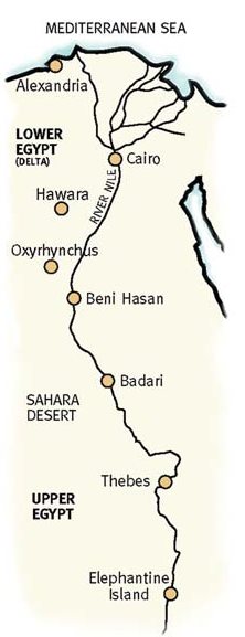 The river Nile is the life of Egypt providing fresh water for a rainless land. Until this century it followed an annual cycle of three seasons:- the August to November flood which left a coating of fresh mud over the fields; the December to March sowing season for the staple crops of barley, emmer wheat and flax for linen and the dry harvest season from April to July.