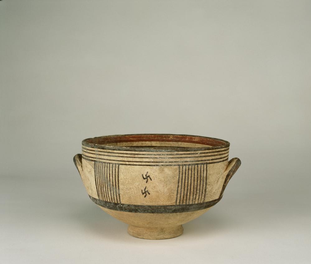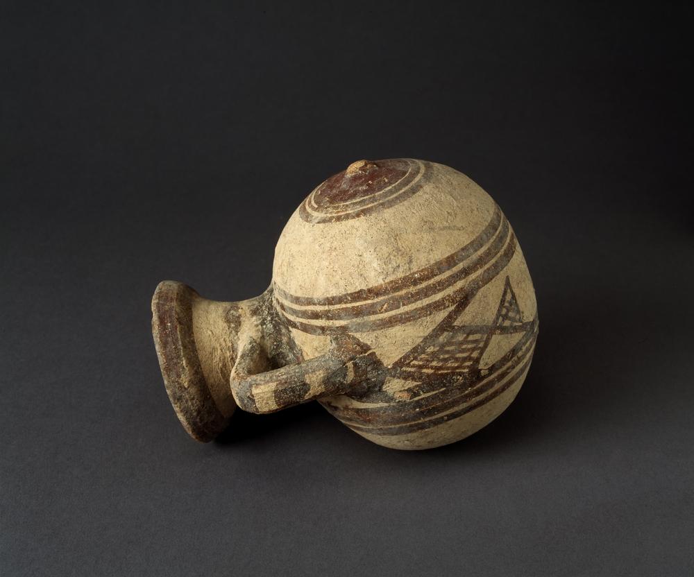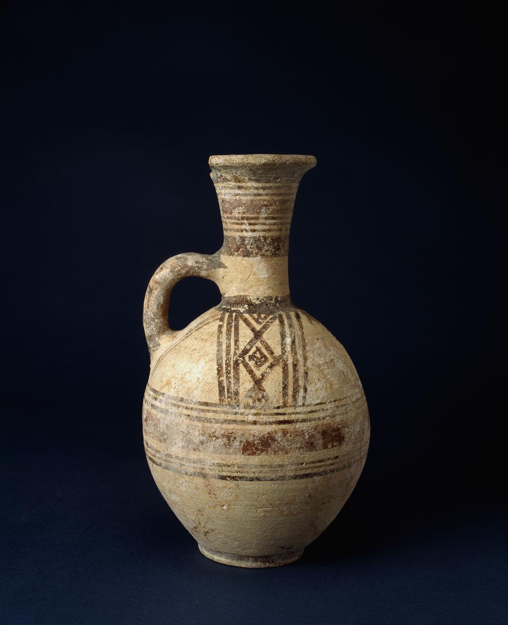 Pottery types also reflect the blend of cultural traditions prevailing on the island at the time. Elements of native Cypriot, Mycenaean and Syro-Palestinian styles can be seen. White painted ware developed from native and imported Late Bronze Age ceramics. Mycenaean-derived vessel shapes such as deep bowls were common in the early part of this period, whereas shapes such as barrel flasks show the influence of Syro-Palestinian pottery.