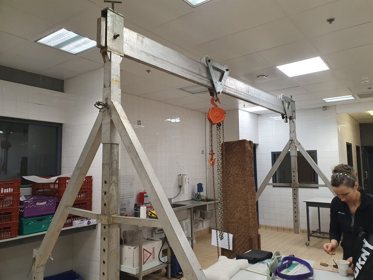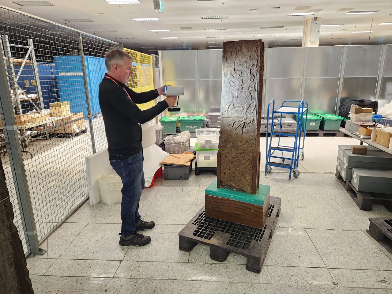 In preparation for our major temporary exhibition Words on the Wave: Ireland and St. Gallen in Early Medieval Europe, opening in late May this year, we reveal the ongoing conservation and scanning work on the famous high cross shaft from Banagher, Co. Offaly (1929:1497). The cross helps tell the story of the connections between art, belief and society in the world which produced the manuscripts. Preparing such a large and important object which has been in the collection for many years for exhibition is a complex thing and needs the skills of many people.