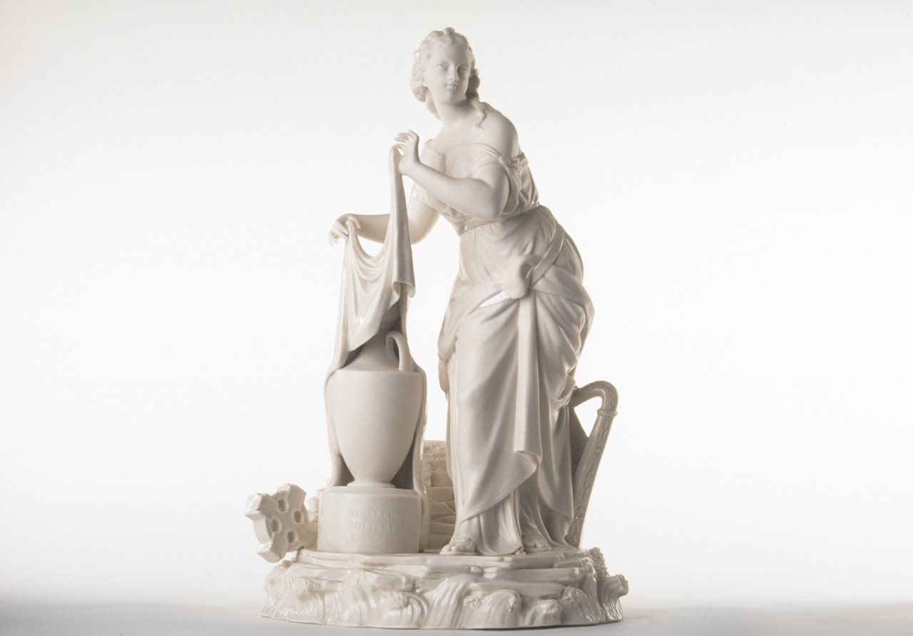 In the National Museum of Ireland we have several examples of some of the finest pieces of Belleek.  My personal favourite is a figure entitled “Hibernia Awakening from her Slumber” This piece was created in 1872 and is a beautiful example of Belleek’s Parian ware.  You can see this and a number of other fine examples of Belleek in the National Museum of Ireland – Decorative Arts and History in Collins Barracks.
