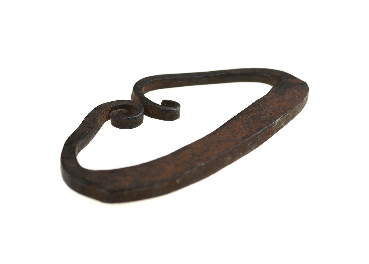 Fire steels, as the name suggests, were formed from steel that was curved into a c-shape with one elongated striking side and 2 terminals. These sometimes formed a complete circle or were decorated in some way; they were portable and shaped to fit neatly into the user’s hand. Fire steels were common objects, used widely in many parts of the world until the use of matches became commonplace.