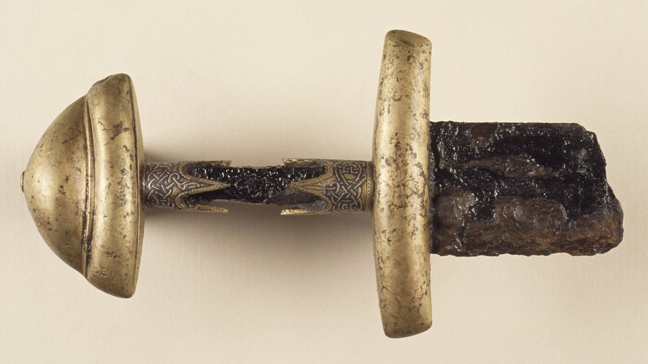 Unfortunately for archaeologists, though, the presence of a ricasso isn’t always easy to detect. Bronze and copper tools survive reasonably well in the archaeological record, but iron, which swords were regularly made of after iron-working was developed, deteriorates swiftly. Unless the lucky blade is in a hypoxic or anoxic environment (meaning there is little to no oxygen), it will deteriorate to the point that it is very difficult to tell if a ricasso was ever present. Many of the swords on display in Viking Ireland are a good example of this; their hilts and pommels are more likely to be made of bronze, gold, or silver and when they are, they are in far better condition than the iron blade (fig. 4)!