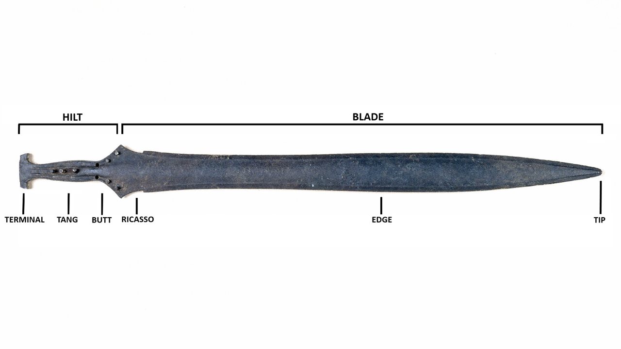 It sounded like some sort of food, or maybe a quirky misspelling of Picasso. But as it turns out, the word “ricasso” refers a short, blunt, and unsharpened portion of a blade, which can be notched or concave, and is found adjacent to the hilt, which is composed of the handle and grip (fig. 1). Not all blades had them, but when present they served a purpose by providing a flat, thick edge on which to rest the index finger.