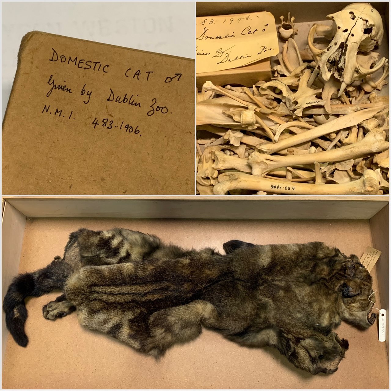 In 1906 a large feral domestic cat was tormenting the animals in the Dublin Zoo. He was finally shot, but not before (according to the register) he “had done a great deal of damage among the stock”. The dead cat was then given to the Museum, where both its skin and skeleton were preserved. While it is not uncommon for animals who died while in captivity at the Dublin Zoo to be given to NMI, this circumstance was unique since the cat wasn’t actually a resident of the zoo – at least, not a welcome one.