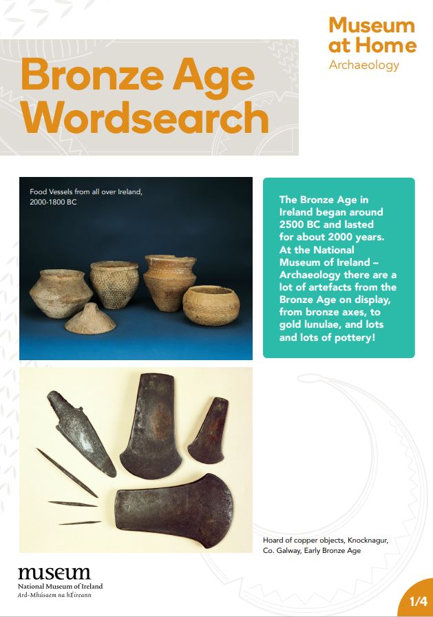 Can you find all the words about the Bronze Age in Ireland in this wordsearch? Download and print out this wordsearch to find out more about what life was like in the Bronze Age in Ireland.