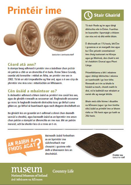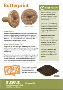 Did you know there is a handling table full of interesting objects for you to touch when you visit the National Museum of Ireland - Turlough Park? Find out all about these objects by reading the fact sheets below. Click on the factsheet link available in Irish and English.