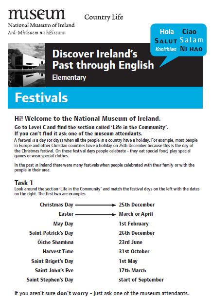 Discover Ireland's past through this series of worksheets for students of the English language: