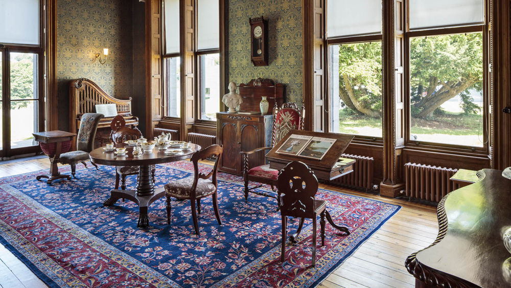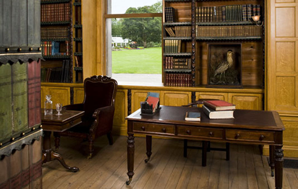 While the library was used mostly for recreation and study, the room was also where tenant farmers paid their quarterly rents to their landlord, the Fitzgerald family. The agent, seated facing the glass doors where the tenants entered, would note the payment in his rent book and issue the tenant with a receipt. It is said that the landlord sometimes sat behind the concealed door to hear what the tenants had to say without being observed.