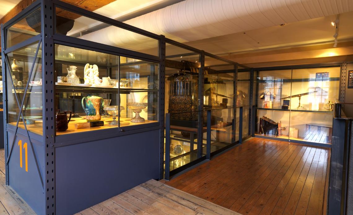 This double-height gallery is designed to give the visitor an impression of the range of artefacts in the reserve collections of the National Museum of Ireland - Decorative Arts & History.