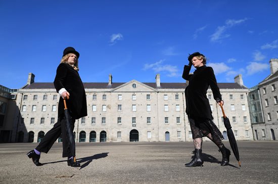 Denis Kehoe - Novelist and lecturer in Visual Culture at the National College of Art & Design in Dublin has developed two alter-egos, Esther Raquel Minsky and Oscar Esterson. Denis spent the duration of the opening hours of the Museum occupying the courtyard, engaging with the space as both Oscar and Esther. Kehoe moved between genders throughout the day and perform different personas (the soldier, the seamstress, and the sailor) in a series of walks, dances and physical movements.