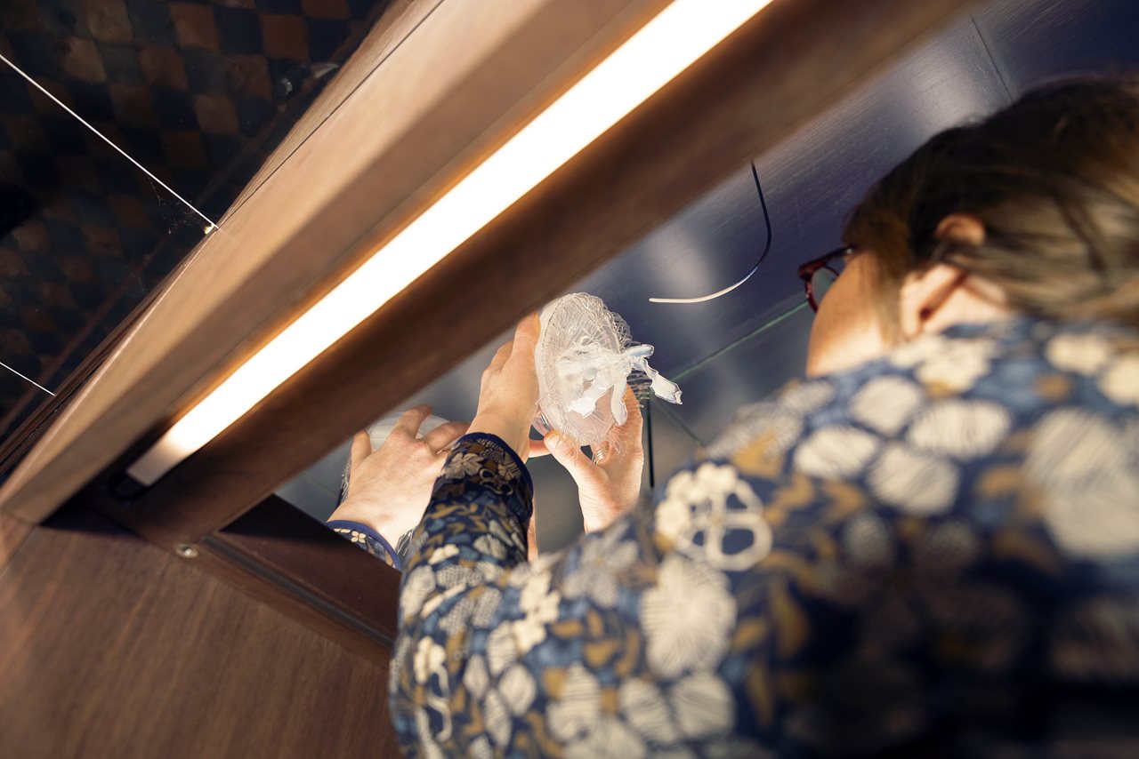When creating the designs for The Wonder Cabinet with Architects AP+E, we decided we wanted to show what jellyfish look like when they were moving, when we see them when swimming in the sea. One way museums exhibit jellyfish is to keep them preserved in spirits in a jar, but this way of displaying jellyfish often makes it difficult to get an idea of what they look like. Museums have a long tradition of using glass models to show what invertebrates, animals without a backbone, look like and this includes jellyfish. By asking artist, Andrea, to create the model we are then carrying on a traditional museum method of displaying what jellyfish look like. Andrea has given us an insight into the shape and parts of a jellyfish and how it looks when it is swimming through the sea.