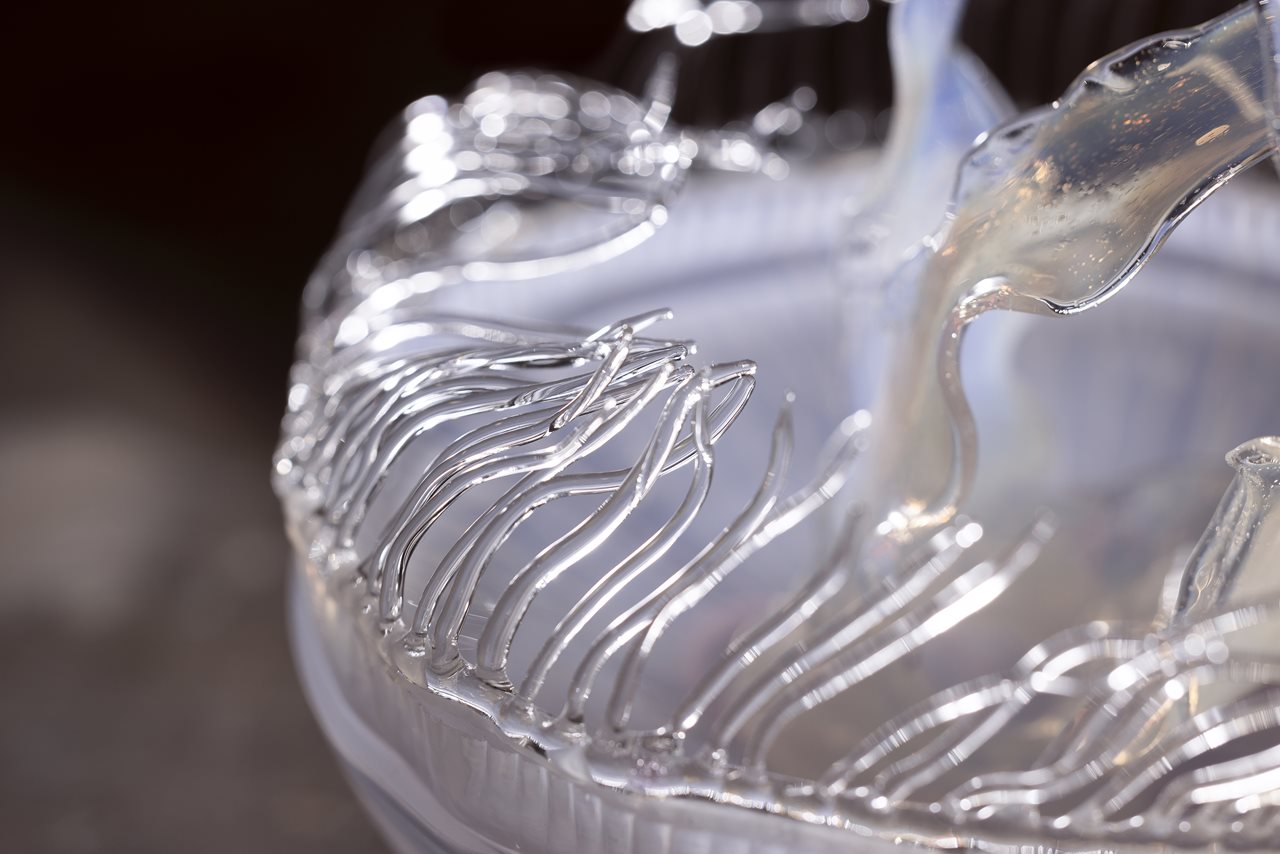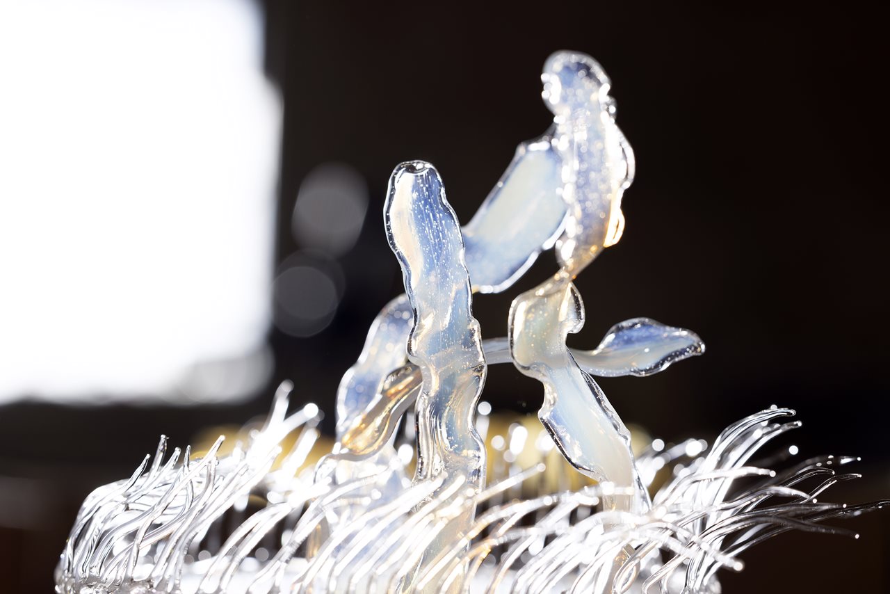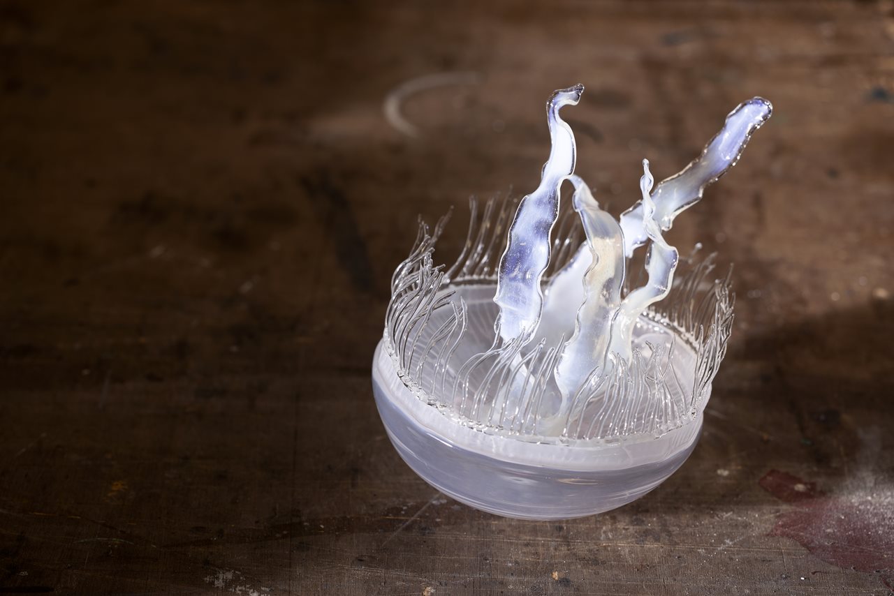 The glass model is an artistic representation of a moon jellyfish, one of Ireland’s most common jellyfish and named for its see-through, moon-like bell body.