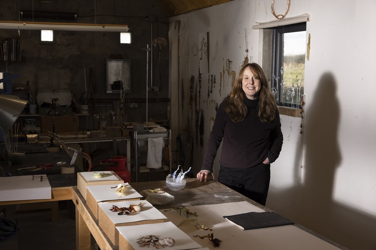 Andrea’s work is inspired by nature. In her studio she goes through a process of investigation of the natural world through the medium of glass. Beginning with glass rods and tubes, she manipulates and sculpts to create a bespoke piece with unique properties.