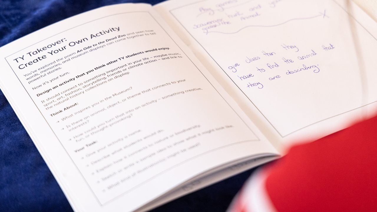As part of Science Week 2025 and in partnership with the Midlands Science Festival, we welcomed Transition Year students from St Mary’s Secondary School, Edenderry, to work with us and develop a new resource for exploring the Dead Zoo Lab. With the Museum's science educators and graphic designers they tested and workshopped with us on the creation of this new journal for students to use when exploring the natural history collections. Teams Tarantula, Octopus, Antler and Elephant Egg shared their thoughts and ideas about themes and activities. Their feedback will help us shape an experience that invites students to slow down, look closely, discuss and record what they see. Through observation, sketching, and reflection, My Nature Journal, invites students to explore the natural history collections, make lasting memories, and find creative ways to reconnect with nature and protect it.