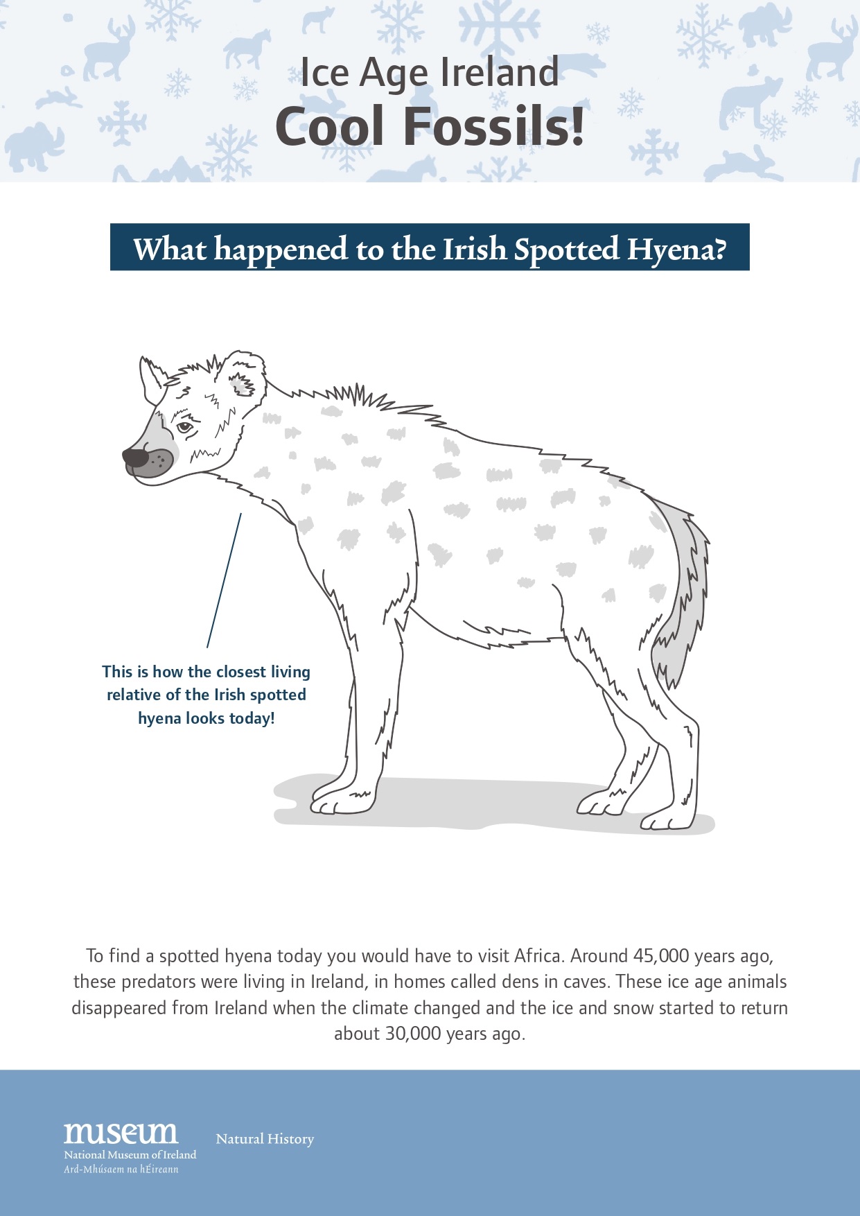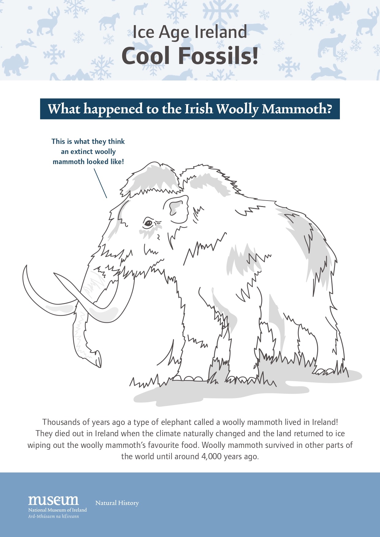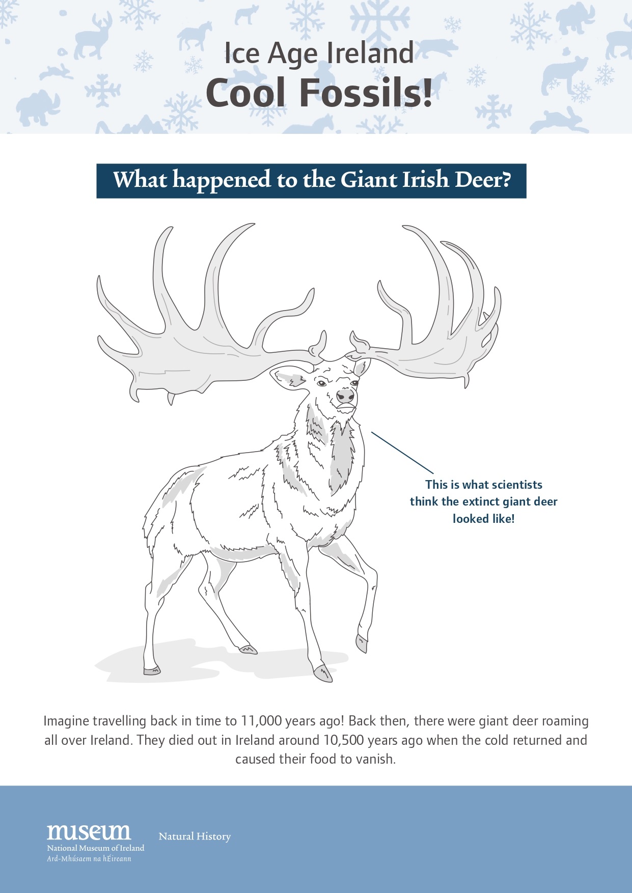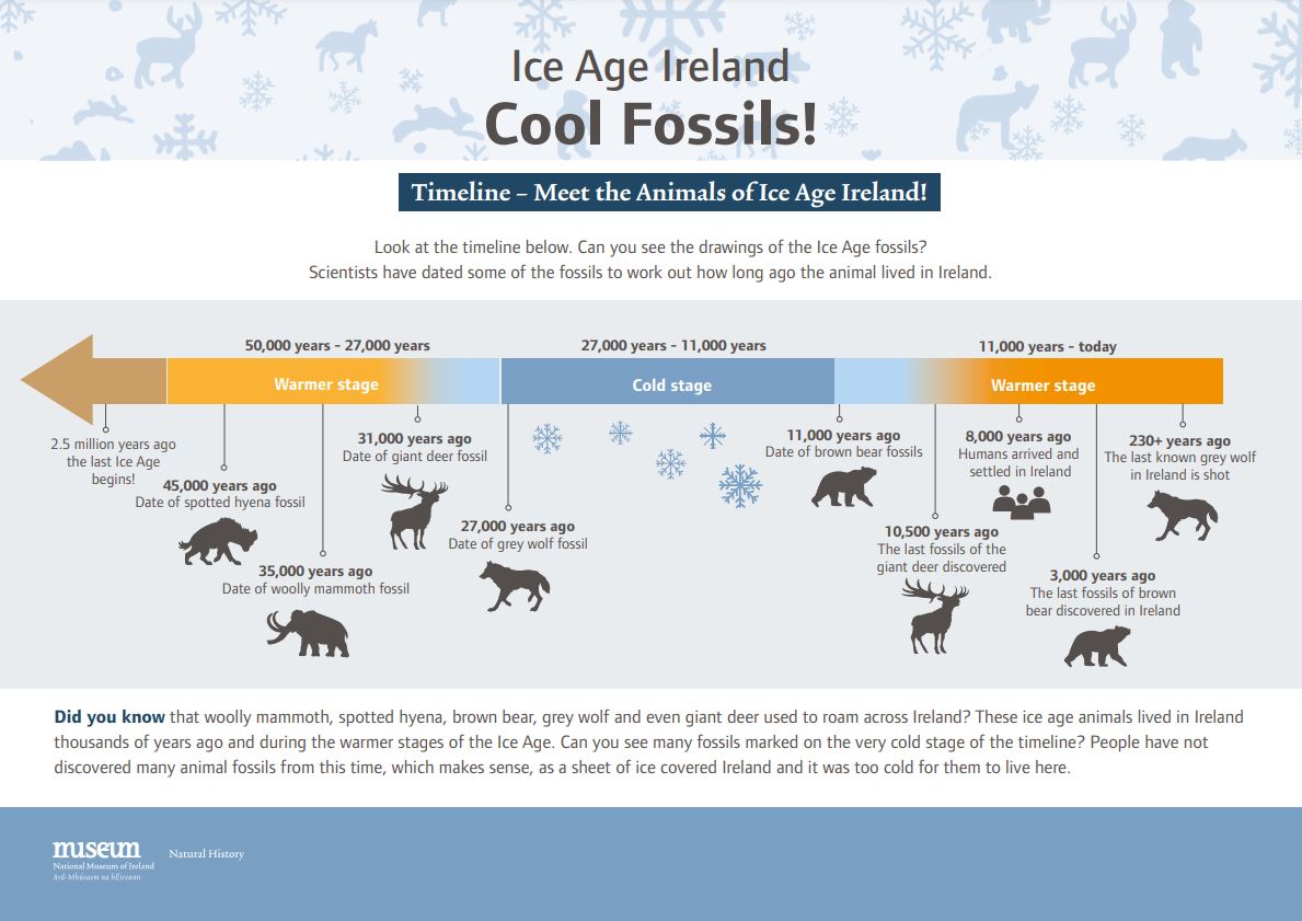 In this museum activity, find out about Ice Age Ireland, learn about fossils and the different kinds of animals that lived on your doorstep thousands of years ago.