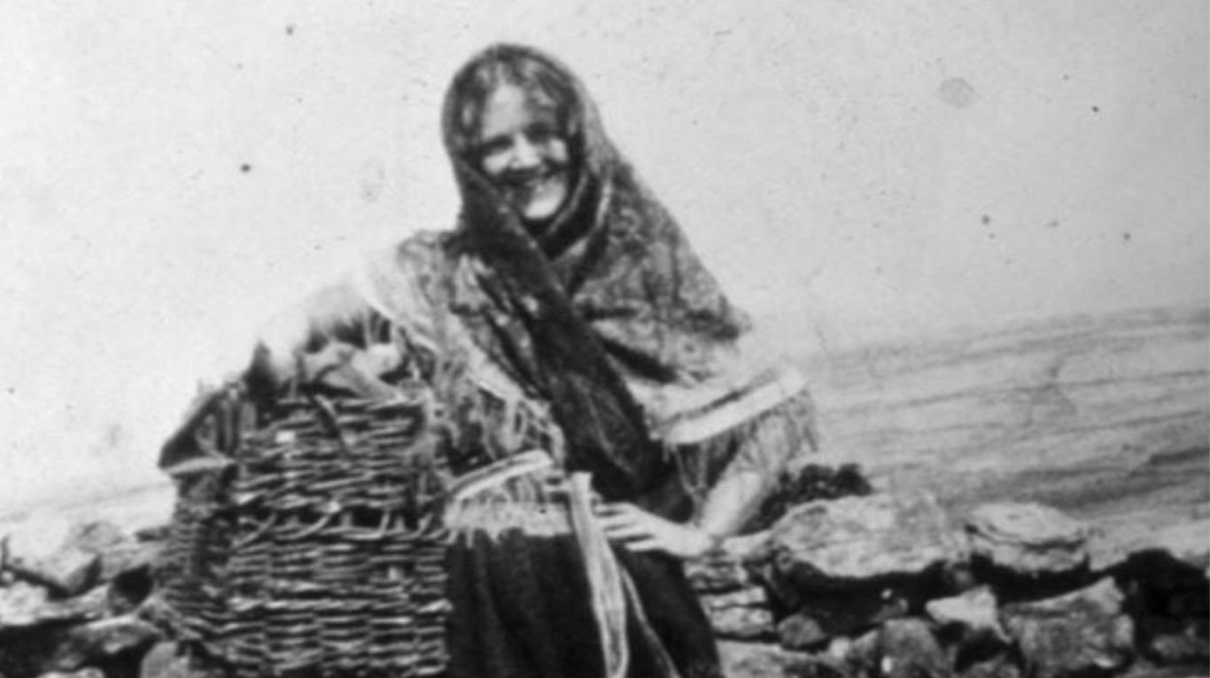 The first exhibition of rural life was organised by the National Museum of Ireland in 1937. Aran Island dress formed an important part of that display. The Museum is grateful to Violet Powell who obtained the clothing items for the Museum from the women of Aran. This was a time when all the collectors working for the Museum and the Irish Folklore Commission were male. Violet is seen here dressed in traditional clothes. IRISH FOLKLIFE COLLECTIONS