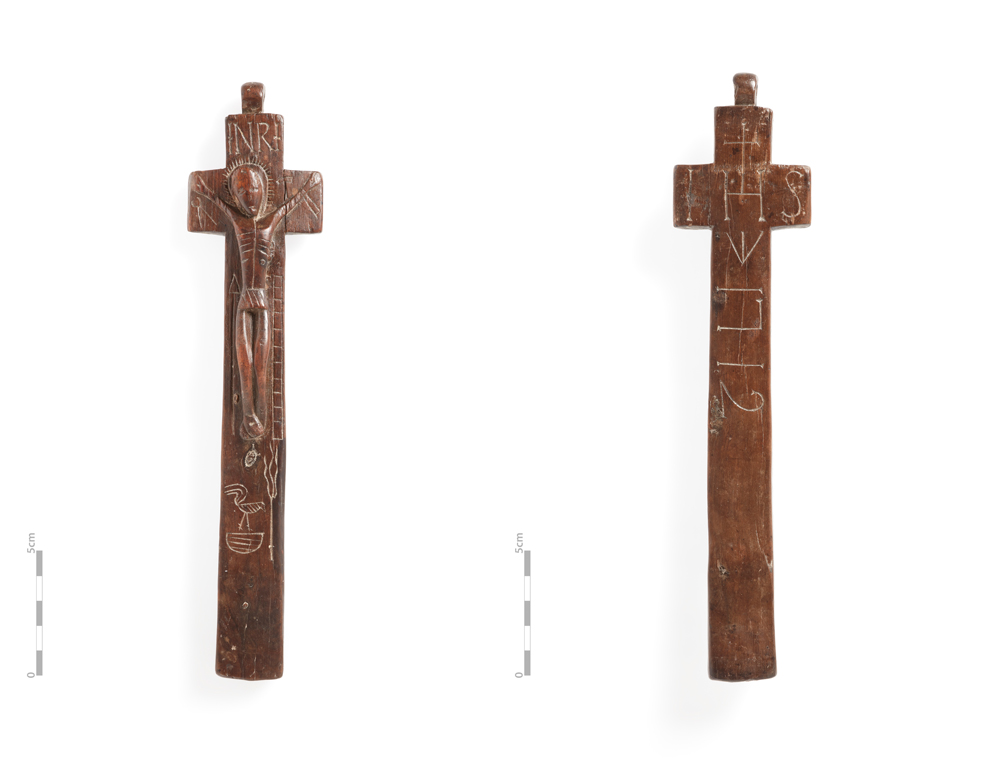 Greanta ar an aghaidh tá INRI. Ar na Siombailí de pháis Chríost tá pionsúir, casúr, sleá, dréimire, sciúirse trí lasc, coileach agus pota.